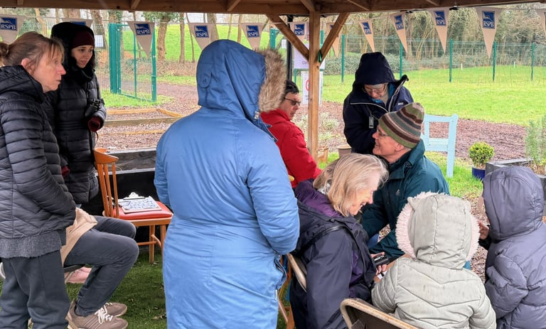 Both families and bird watching enthusiasts enjoyed the Big Garden Bird Watch hosted by Tony Coughlan and James Appleby, with North Bucks RSPB group, at WCC's Community Garden in Coffee Hall on 25 January. Despite the cold weather, thirty people explored the garden while counting birds.