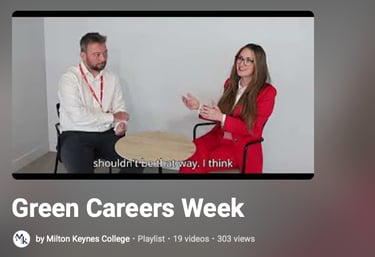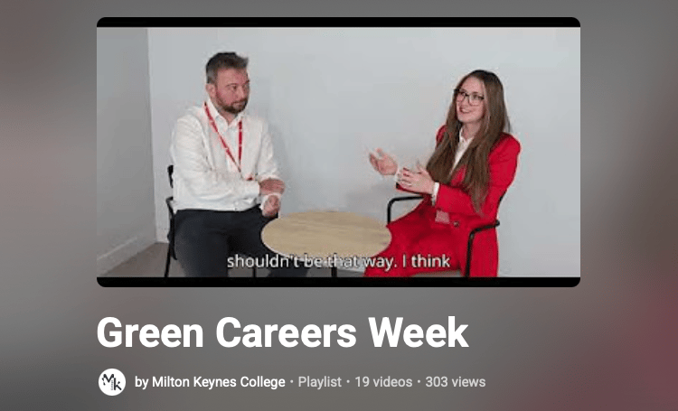 Businesses including Santander, Aston Martin Aramco, Scania and MK Dons created bite-sized sustainability videos with students at MK College in Leadenhall. The event marked this month's Green Careers Week. The fascinating videos are freely available from this YouTube playlist.