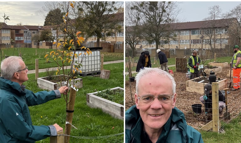 Last Spring, Tony Coughlan and other volunteers helped establish a new MK Forest Garden in Fishermead by planting useful herbs and young fruit trees. Tony is also involved in the related Forest Gardens in Coffee Hall and Netherfield. This Autumn, Tony returned to check the garden before winter maintenance. It looked in need of a little attention, so he has reported this to Fishermead Councillor Jane Whild, who says she will raise this with the council landscaping team.